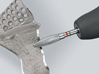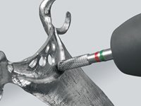 Hartmetallfräser NEF Für glatte und leicht polierbare Oberflächen von NEM- und EMF-Legierungen Dank der speziellen Konstruktion arbeiten die Fräser sehr weich und vibrationsarm. Ihr Einsatzbereich ist vorrangig dort anzusiedeln, wo es auf glatte, leicht polierbare Oberflächen ankommt. Die NEF-Verzahnugn ist sehr gutmütig, hakt nicht ein und überzeugt aufgrund ihrer Schneidenwinkel durch eine lange Standzeit. Mit rot-grünen Farbringen auf dem Werkzeugschaft sind die Fräser markant gekennzeichnet und auf einen Blick zu erkennen.