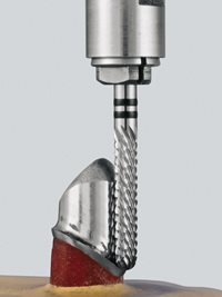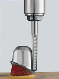 Hartmetallfräser XE Zum effizienten Vorfräsen von schwer zerspanbaren Legierungen Für die Bearbeitung von NEM- oder auch Titan-Legierungen wurde von Komet die neue XE-Verzahnung entwickelt. Diese ist eine spezielle Weiterentwicklung der bisherigen Kreuzverzahnungen für den Einsatz im Fräsgerät. Bei messbar höherem Abtrag punktet die neue XE-Verzahnung gleichfalls mit weicherem Lauf. Dabei erzielt man eine Oberfläche, die sichtlich hilft, beim nachfolgenden Schlichten mit der S-Verzahnung, Zeit zu sparen. Darüber hinaus besitzt die Verzahnung eine auf diesen Legierungen unerreichte Standzeit und lässt das Labor daher wirtschaftlicher arbeiten.
