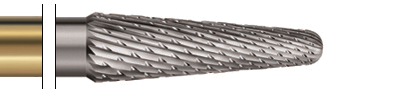 Die UK Verzahnung eignet sich für die Bearbeitung von Keramik (vor dem Glanzbrand) ebenso wie für Kunststoff-Verblendmaterialien und für Übergänge von der Verblendung zum Metallgerüst. Aufgrund eines neuen zweifachen Verzahnungsschliffes erfüllen die mit den UK Fräswerkzeugen erzeugten Werkstückoberflächen höchste Ansprüche. Scharfe und schartenfreie Schneiden sowie hohe Standzeit durch Verwendung eines feinkörnigen und hochverdichteten Hartmetallwerkstoffes. Durch den weißen Farbring, den vergoldeten Schaft sowie durch die in den Schaft gelaserte Kennzeichnung der Verzahnungsart UK.