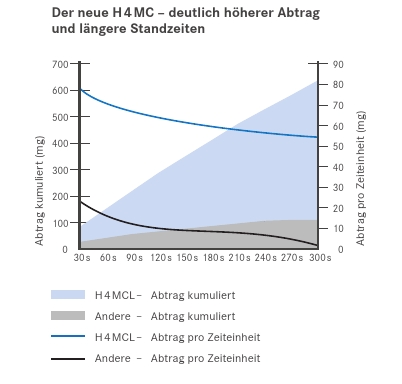 Der H4MC ermöglicht durch seine spezielle D-Verzahnung das schnelle und problemlose Zerspanen von Kronen und Brücken aller gängigen Metall-Legierungen. Große Spanräume ermöglichen eine schnelle Spanabfuhr und verhindern speziell bei der Zerspanung von weichen goldhaltigen Legierungen das Verschmieren. Auch Keramikverblendungen sind für den H4MC kein Problem. Die pyramidenförmige Schneidengeometrie verhindert Schneidenausbrüche, gibt den Instrumenten eine hohe Stabilität bei hoher Bruchfestigkeit und sorgt für einen vibrationsarmen und ruhigen Lauf.